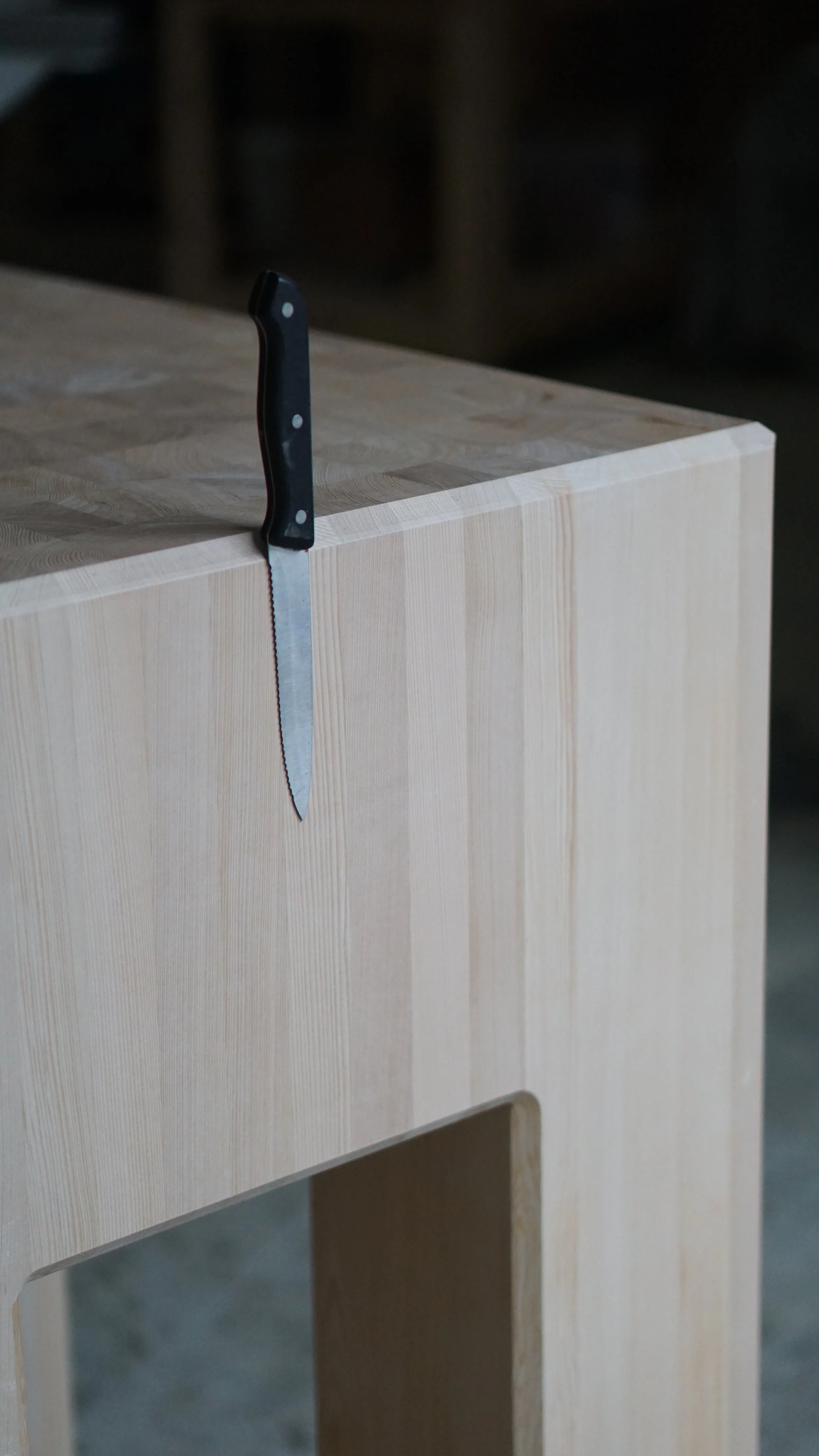 A custom butcher’s block for a new organic butcher’s shop in Melbourne. Created using 252 individual pieces of Tasmanian Celery Top Pine, an endemic timber of Tasmania which was extracted from the bottom of Lake Pieman through Hydrowood Timbers. A lovely timber that is odourless, flavourless and highly rot resistant - perfectly fitting the brief for a butcher’s block.