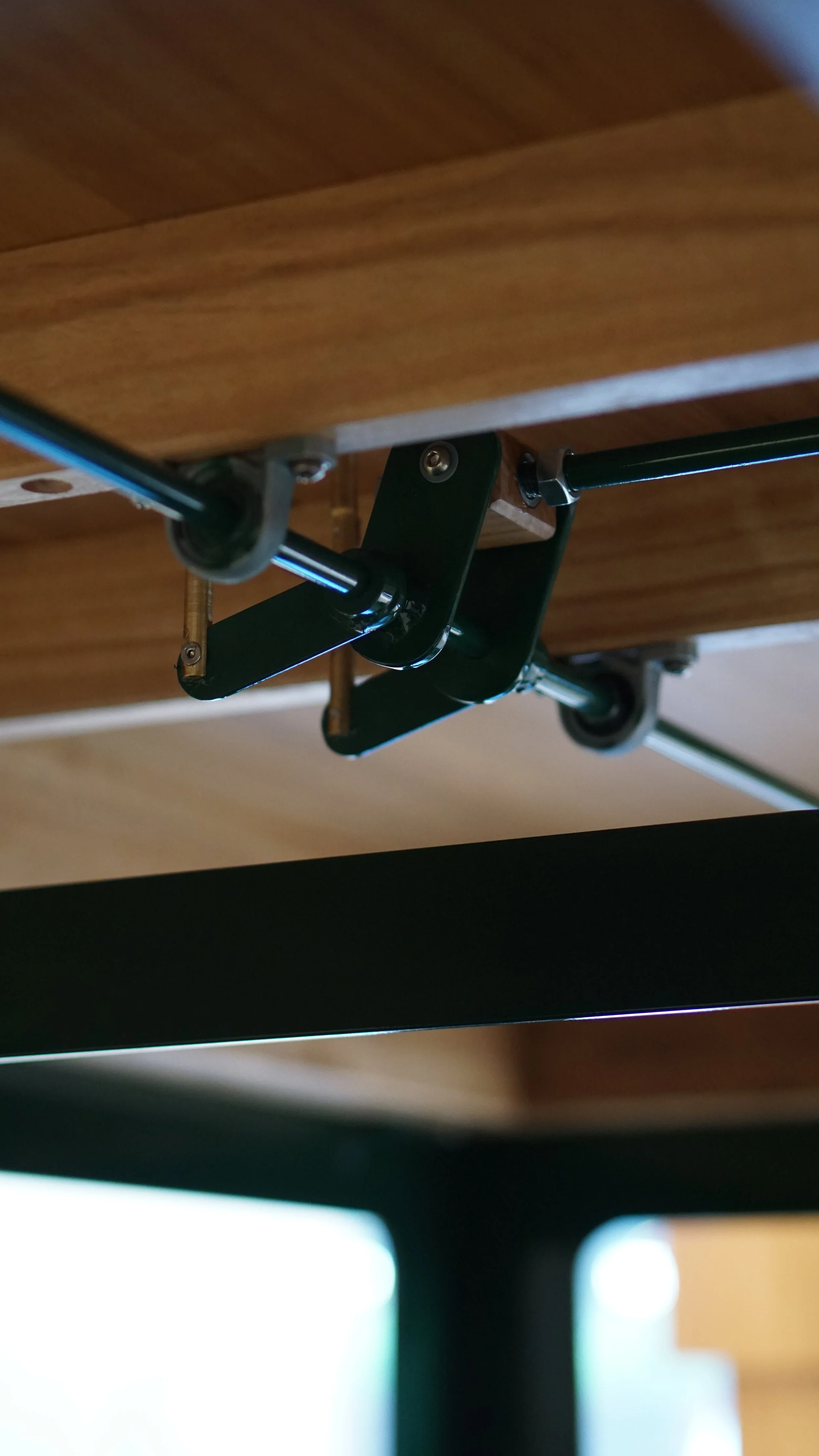 The brief included the requirement for locating pins where plastic boards can be placed on top for butchery classes the client intends to hold. Brass pins all made in house on a screw type mechanism allowed the four pins to raise and lower when required.